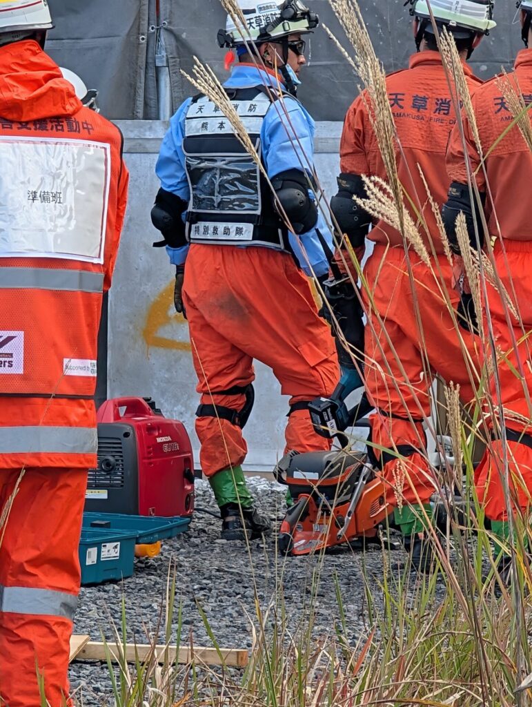 今回の訓練には、熊本県と佐賀県の消防隊の皆様に加え、自衛隊の皆様が参加され、大規模な災害発生を想定した実践的な訓練が2日間にわたり、大変真剣に行われました。